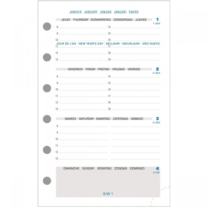 Recharge millésimée Exatime14 16mois blanc. Format : 12,6 x 8,1 cm. 16 mois de Septembre à Décembre. 1 Semaine sur 2 pages à l'horizontale. Papier blanc.
