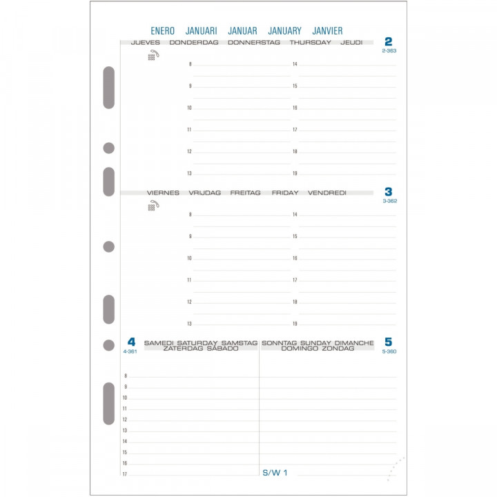 Recharge millésimée Exatime21 12mois blanc. Format : 14,2 x 21 cm. 12 mois de Janvier à Décembre. 1 semaine sur 2 pages à l’horizontale. Papier blanc.