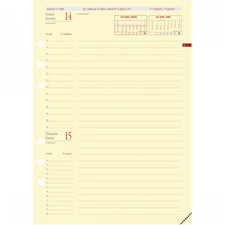 | Type de produit | Recharge agendas organiseurs |