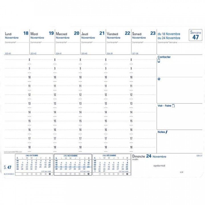 Recharge millésimée Blockhebdo. Format 19.6 x 14.5 cm. Vendu sans le bloc. Recharge bloc "Agenda planing" hebdomadaire. 12 mois de janvier à décembre. Feuillets blancs détachables.