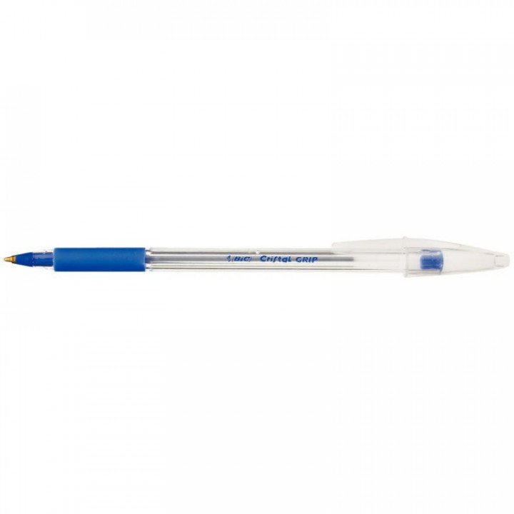 Stylo bille Bic Cristal Grip pointe moyenne bleu. Corps héxagonal avec grip caoutchouc pour une prise en main confortable. Jetable