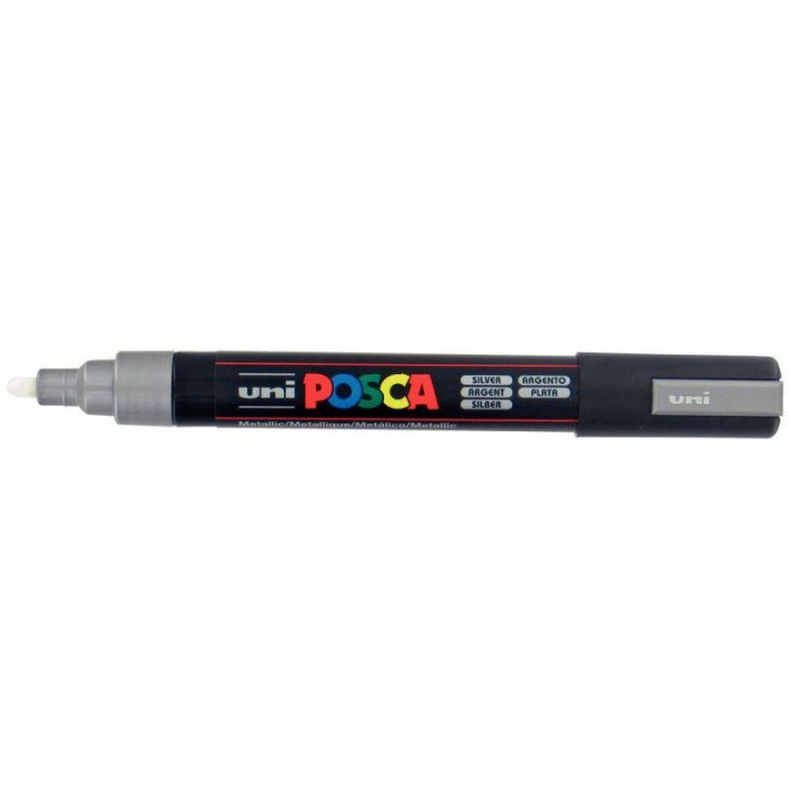 Marqueur Posca pointe moyenne ogive argent. Les couleurs sont denses, opaques, couvrantes, superposables et ne pâlissent pas à la lumière. L'encre est inodore. S'applique sur tous supports : papier, bois, plastique, verre, métal… Peint, dessine, écrit et marque. Pour des applications illimitées !