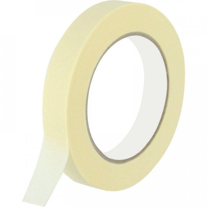 Rouleau adhésif papier de masquage 50mx19mm. Résiste à des températures jusqu'à 60°Utilisé pour fixation. Colle sur quasi toutes les surfaces, papier, vitres, murs.Utilisé dans les ateliers de peinture.Se décolle sans laisser de traces. Base adhésive avec solvants