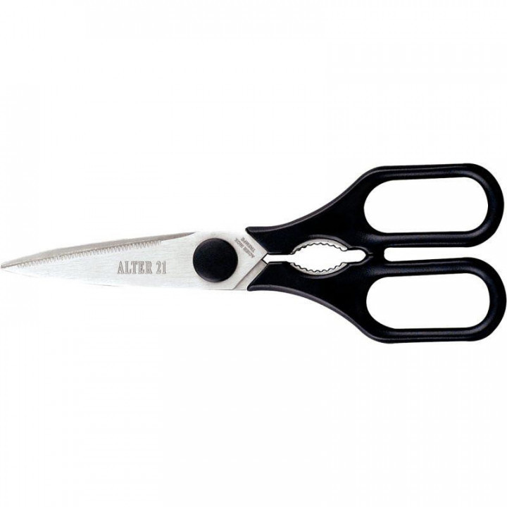 Ciseaux de bricolage multi usages ALTER 21, 21 cm. Anneaux symétriques en plastique. Bouts pointus. Lames micro dentées en inox.