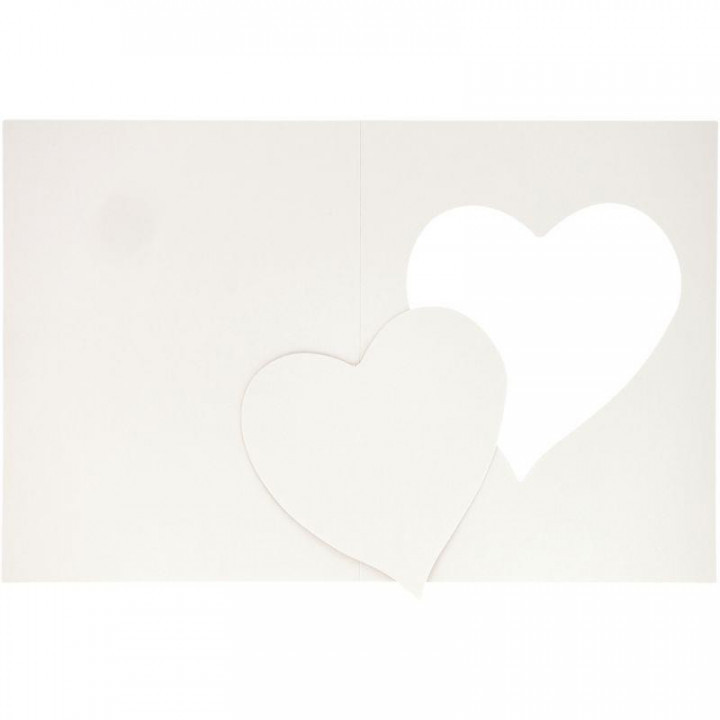 Lot de 10 cartes photo cœur en carton. Format de la carte pliée 17 x 22 cm pour photo 9 x 14 cm. Carton blanc à décorer.