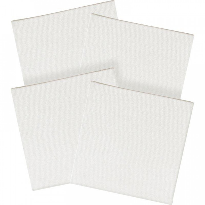 Lot de 4 cartons entoilés 10x10 cm. Carton 280g recyclable, entoilé 100% coton blanc. Dimensions : L.10 x l.10 cm. A décorer avec de la peinture, des feutres, des marqueurs et à personnaliser avec des tampons, des strass, des rubans adhésifs... les possibilités sont infinies !