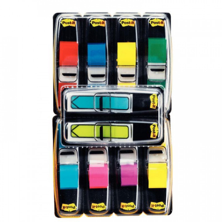 Lot de 280 index étroits + 48 index flèches gratuits. Composé de 4x35 Index étroits couleurs classiques et de 4x35 index étroits couleurs vives + 2 distributeurs de 24 index flèches bleu et jaune gratuits.
