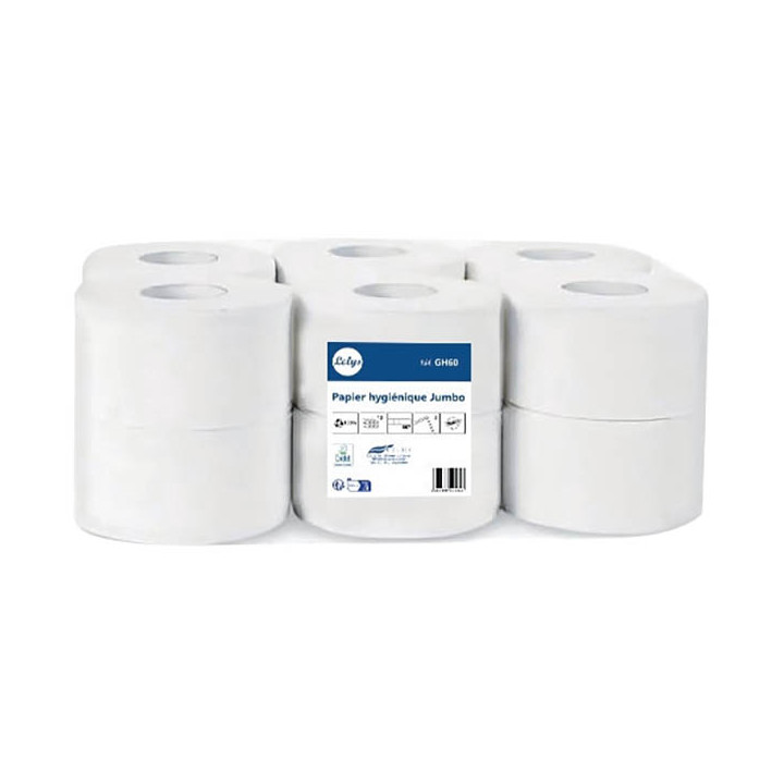 Lot de 12 rouleaux papier hygiénique Jumbo 2 plis.