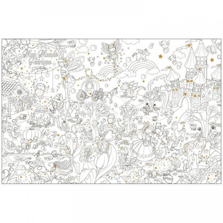 Coloriage géant les fées. Support papier offset 150g/m² - impression noir, vendu plié dans une pochette carton, filmé a l'unité Dimension 80 x 120 cm - pochette 22 x 30.5cm