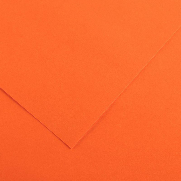 Paquet de 10 feuilles Colorline 50x65 cm 150 g orange. 1 face lisse / 1 face légèrement grainée. Teinté dans la masse. Offre une grande polyvalence et convient à un usage quotidien. Parfait pour les travaux manuels, également adapté à l’esquisse et au dessin. La face lisse laisse glisser feutres et marqueurs, la face légèrement grainée permet de supporter crayons, fusains et pastels. D’une texture équilibrée, ce grain accentue les effets de relief et offre une bonne résistance au gommage et au grattage. Dimensions : 50x65cm