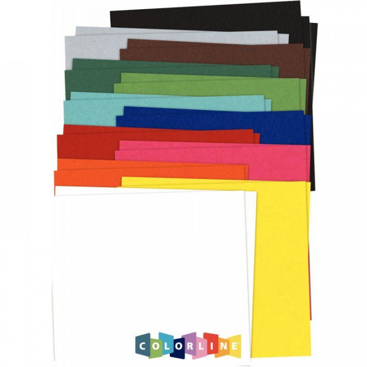 Paquet de 25 feuilles Colorline 50x65cm 150g assortis. 1 face lisse / 1 face légèrement grainée. Teinté dans la masse. Offre une grande polyvalence et convient à un usage quotidien. Parfait pour les travaux manuels, également adapté à l’esquisse et au dessin. La face lisse laisse glisser feutres et marqueurs, la face légèrement grainée permet de supporter crayons, fusains et pastels. D’une texture équilibrée, ce grain accentue les effets de relief et offre une bonne résistance au gommage et au grattage. Dimensions : 50x65cm 12 couleurs : 2 feuilles par couleur + 3 feuilles pour le noir. Détail des couleur : blanc/jaune d'or/orange/fuchsia/rouge/bleu roi/bleu turquoise/vert franc/vert mousse/gris clair/chocolat/noir Certifié FSC.