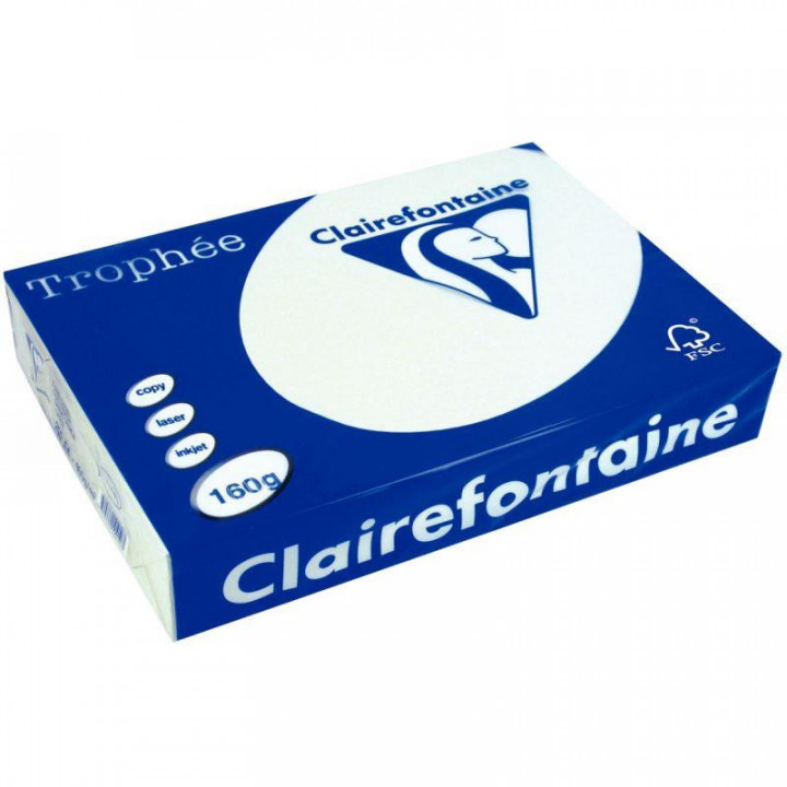 Paquet de 250 feuilles format A4 160g gris CLAIREFONTAINE. Grâce à son excellente opacité, les impressions recto verso sont parfaites, le rendu fidèle des couleurs est assuré. Sa grande tenue permet un passage impeccable en machine. TROPHEE vous offre une qualité d'impression irréprochable en copie, jet d'encre ou laser. Sa structure homogène garantit un passage en copieur sans bourrage. Macule en papier recyclable.