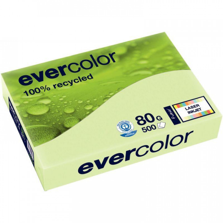 Ramette de 500 feuilles format A3 80g vert recyclé. La gamme EVERCOLOR est élaborée suivant un procédé écologique : énergie verte, peu de déchets générés, aucune utilisation de produits chlorés. Les papiers EVERCOLOR permettent de diversifier vos outils de présentation, offrant par ailleurs les caractéristiques idéales pour les photocopieurs, imprimantes laser et jet d'encre. 100% recyclé.