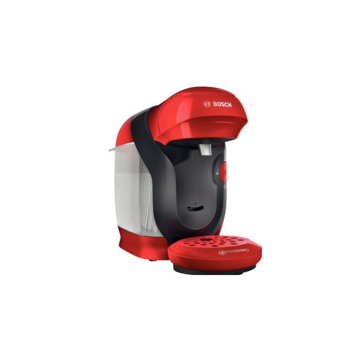 Machine Tassimo Style. Cafetière multi-boissons Tassimo Style, choix unique de plus de 40 boissons. Dimensions compactes et design moderne. le système ajuste automatiquement le volume d'eau, la température, le temps de préparation et s'arrête automatiquement lorsque la boisson est prête. Repose tasse amovible et ajustable 2 niveaux. Pas de temps de préchauffe ni d'attente entre deux boissons. Nettoyage vapeur systématique après chaque boisson. Programmes de détartrage et de nettoyage automatique. Arrêt automatique après 90 secondes. Réservoir : 0.7L Pression : 3.3 bars. Puissance 1400W. Garantie 2 ans.