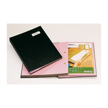 Parapheur avec clip de maintien des documents à signer. Couverture plastique rembordée avec porte-étiquette, bas des feuillets encochés et renforcés, feuillets buvard, dos extensible renforcé. Format : 26,5 x 33 cm.