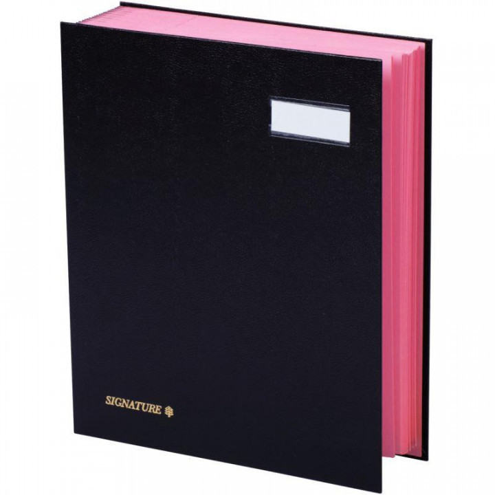 Parapheur à simple clip 25 compartiments noir. Couverture en carton rigide recouvert d'un film plastifié grainé. Porte étiquette + étiquette. Avec système de clip pour maintenir le courrier en place dans chaque compartiment. Compartiments en buvard rose perforés pour déceler la présence de documents à l’intérieur. Onglets encochés et renforcés. Dos extensible renforcé toilé. Format 24x32 cm pour classer format A4.