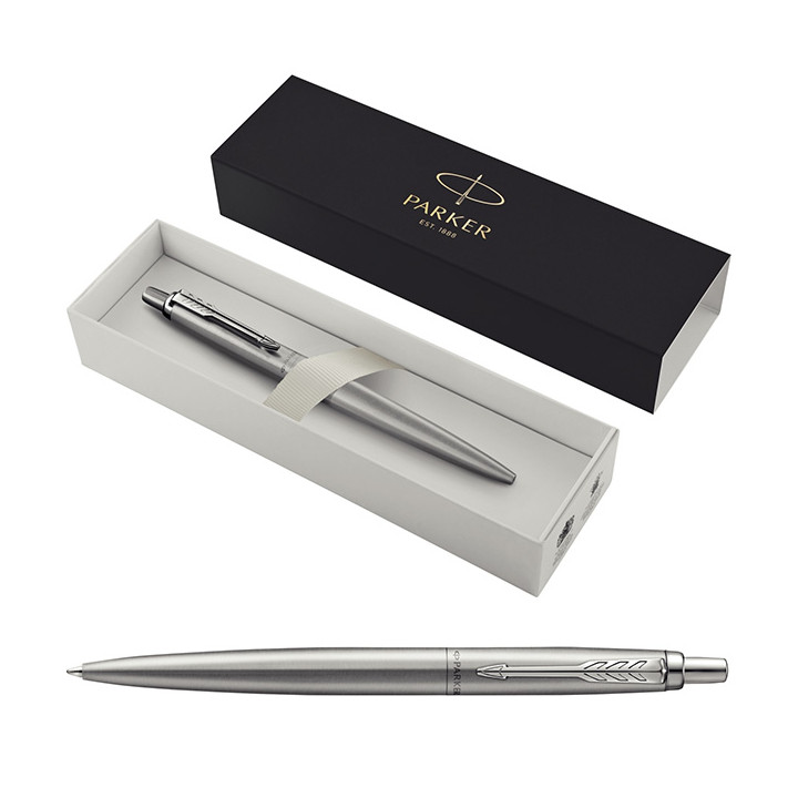 Stylo bille Jotter XL argent. Finition monochrome métallique élégante et très tendance. Le design de l’authentique Jotter dans un corps plus large, pour un confort d’écriture amélioré. Encre bleue. Rétractable.