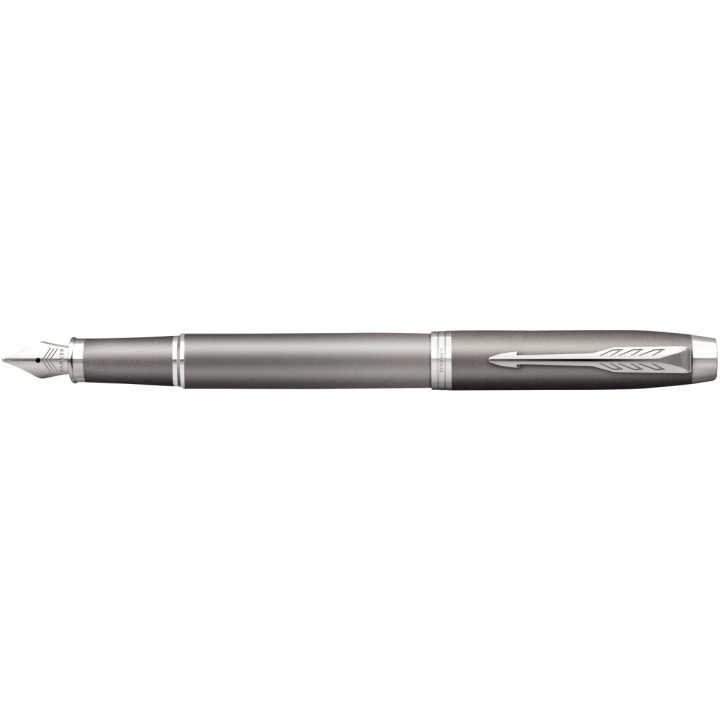 Stylo plume IM Writing Rituals Grey GT bleu. Plume fine. Finition chromée, corps gris dégradé. Cartouche d'encre bleue, livré en coffret cadeau.