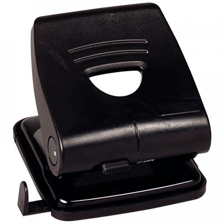 Perforateur 2 trous 30 feuilles. Base métal, levier ABS résistant. Verouillage du levier replié pour un rangement plus pratique. Capot réceptacle à confettis à ouverture partielle. Réglette d'indexation des formats. Garantie 10 ans.