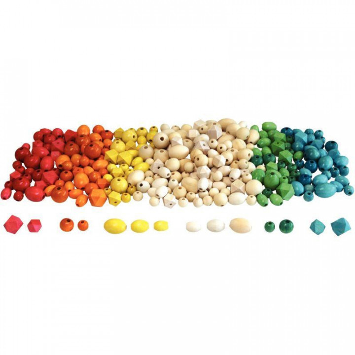 Sac de 300 perles en bois scandinaves. 6 Coloris assortis jaune, orange, bleu, rouge, vert et naturel