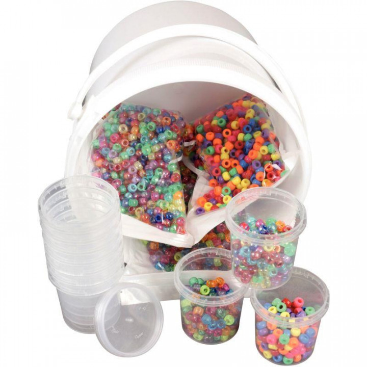 Seau 3000 perles cassis + 10 pots vides offerts. 3 x 1000 perles assorties : opaques / nacrées / pailletées