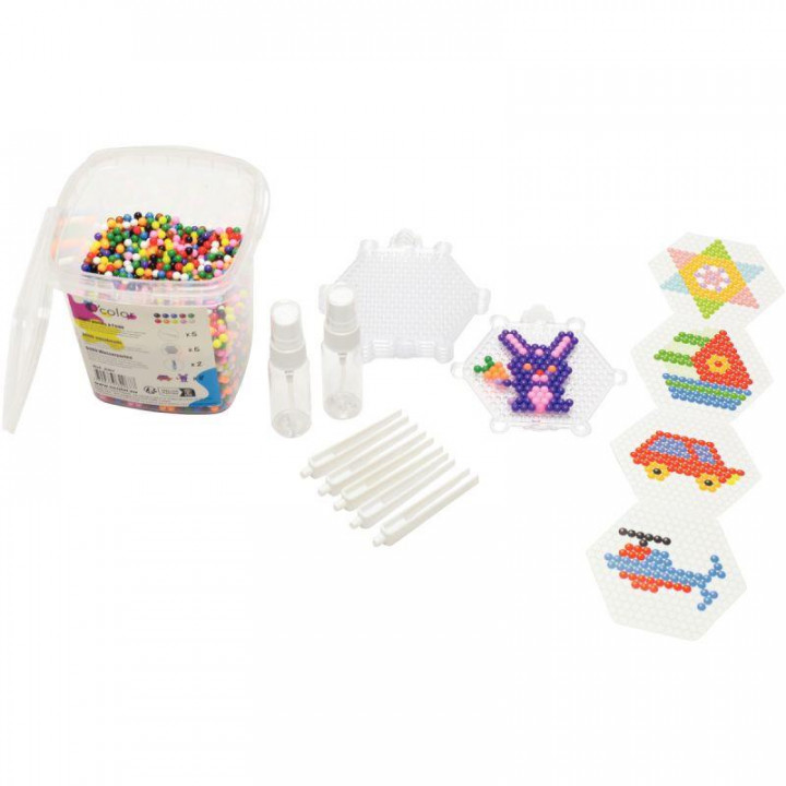 Schoolpack 6000 aquaperles et accessoires. Contient 6000 aquaperles 5mm + 5 plaques hexagonales + 2 mini vaporisateurs + 5 pinces à perles + 8 modèles de 4 cartes Recto/Verso Ne convient pas aux enfants de moins de 36mois