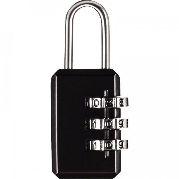 Cadenas à combinaison 20mm noir. Corps en métal, anse en acier. Dimensions : l. 23 x H. 58 x E. 10mm