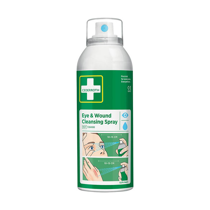 Spray nettoyant yeux et plaies. Vaporisateur conçu pour nettoyer et éliminer la poussière et les saletés des yeux et des blessures. Le spray délivre un flux de liquide doux, offrant une durée de rinçage totale de 5 minutes, pratique pour les écorchures, qui doivent être soigneusement nettoyées. Le spray peut être utilisé plusieurs fois et reste stérile jusqu’à la dernière goutte.