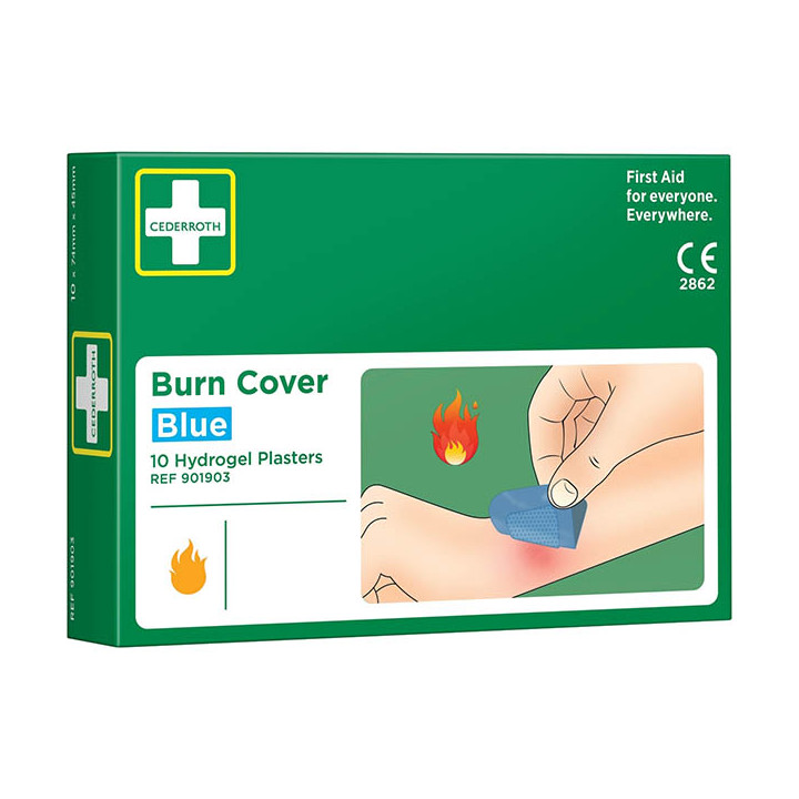 Boîte de 10 pansements pour brûlure. Pansement pour brûlure convient également pour les écorchures et les petites coupures. De couleur bleue, ce qui permet de l’utiliser pour la manipulation d’aliments. Composé d’un hydrogel qui ne colle pas à la plaie. Imperméable et stérile. Avant d’appliquer le pansement pour brûlure, rafraîchir la brûlure pendant au moins 20 minutes. Pansements stériles 74 x 45 mm.