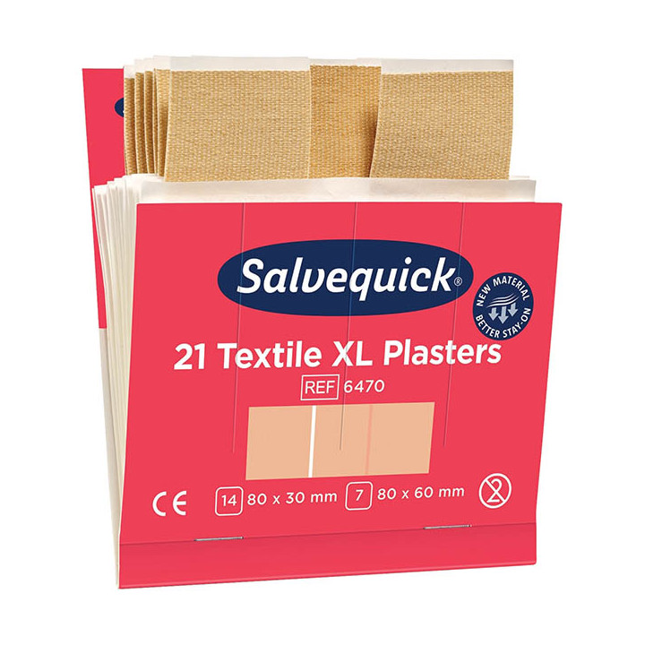 Boite de 6x21 maxi pansements textiles. Les pansements textiles maxi sont des pansements solides de taille supérieure et de haute qualité. Ils sont hypoallergéniques. Faciles à appliquer, ils sont souples et simples d’utilisation. Contient 6 lots comprenant 14 pansements 80x30 mm et 7 pansements 80x60 mm.