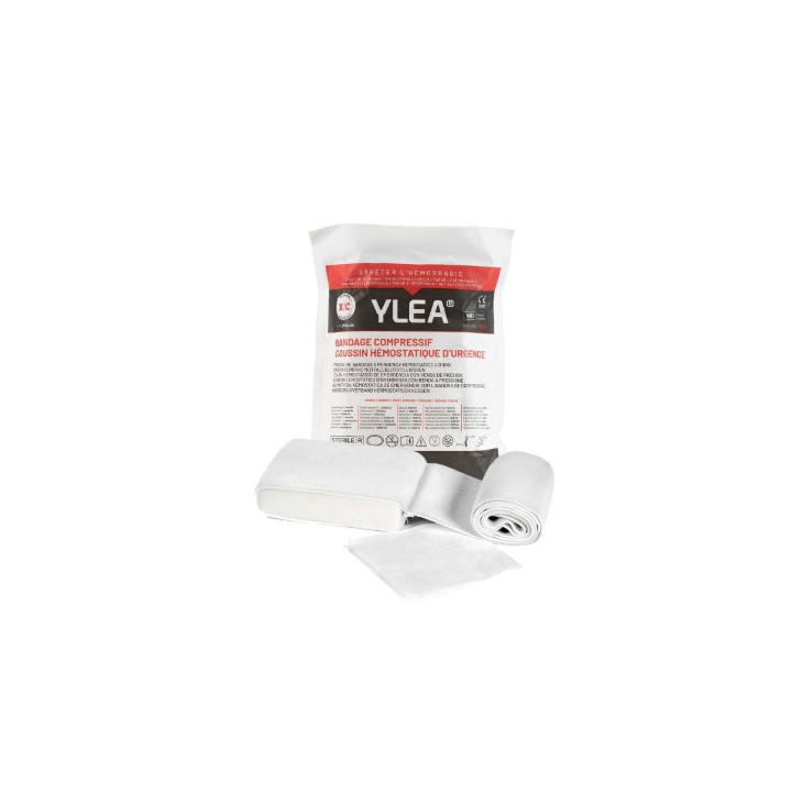 Le pansement compressif CHUT YLEA est équipé d’un coussin hémostatique qui agit directement sur la plaie. Ce coussin favorise la coagulation sanguine, réduisant ainsi les pertes de sang tout en évitant l'utilisation immédiate d'un garrot. Il est conçu pour être ajusté à l’aide d’une bande élastique, garantissant une compression homogène adaptée à la gravité de la