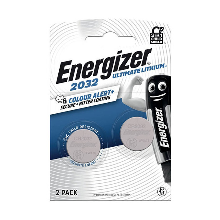 Blister 2 Piles Energizer Ultimate Lithium 2032. Offre des performances fiables et longue duréer pour tous vos appareils spéciaux, tels que les moniteurs de fréquences cardiaques, les télécommanes, les systèmes de déverouillages sans clé, les glucomètres, les jouets et les jeux. Conservent leur énergies dans leur emballage pendant 12 ans. Ces piles au lithium supportent les températures les plus extrêmes, de -30 à 60 °C.