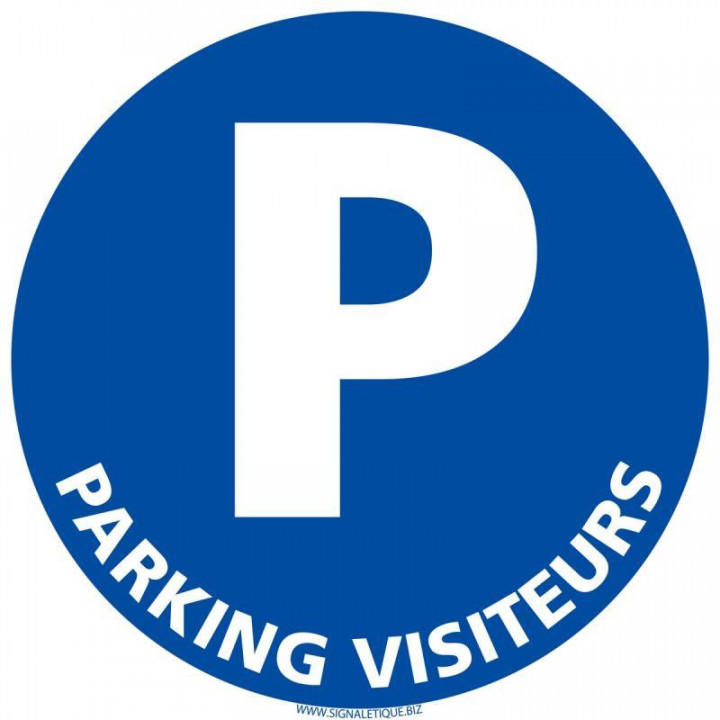Panneau parking visiteurs diamètre 25cm. Panneau signalétique à coller. Support : PVC 1,5mm, classée M1 au feu. Adhésif au dos colle forte (pose facile). Panneau laminé anti-UV, anti graffiti, anti-rayure. Garanti 10 ans. Diamètre : 25cm.
