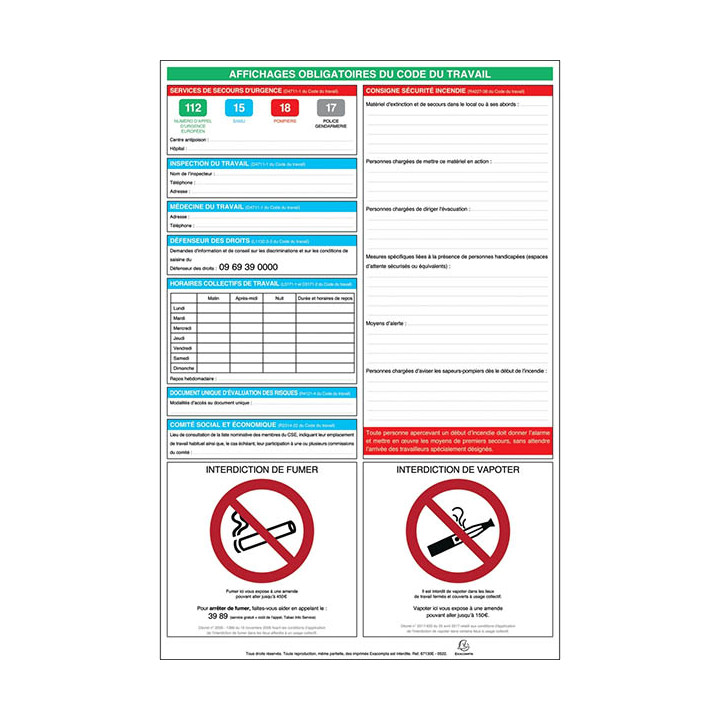 Panneau affichage obligatoire 40x60cm.