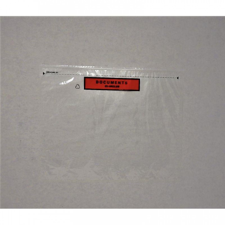 Boite de 100 pochettes adhésives "documents ci-inclus" 320x250mm. Pour la signalisation de vos colis et la protection de vos documents d'accompagnement (courrier, bordereau de livraison, ...).