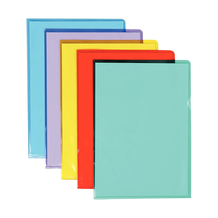 Sachet de 50 pochettes coin en PVC lisse, coloris assortis. Polypropylène haute résistance 20/100ème lisse et transparent. Format 22 x 30,5 cm pour documents A4 (21 x 29,7 cm). Double coup de pouce facilitant l'utilisation. Soudure en pied renforcée.