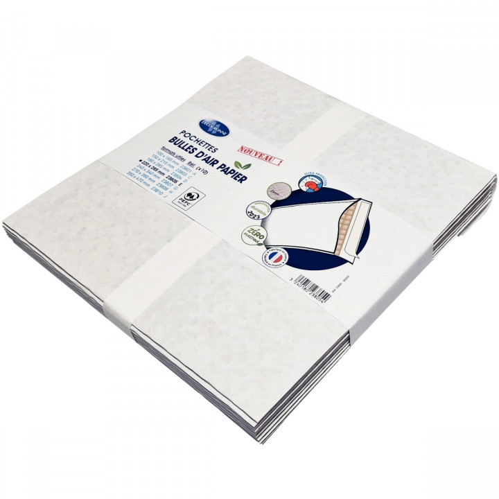 Paquet de 10 pochettes bulle air blanc 220 x 265 mm. Pour l'expédition d'objet fragiles Haute résistance du kraft blanc. Matelas de bulles très épais antichoc. Intérieur glissant pour insertion facile des objets.