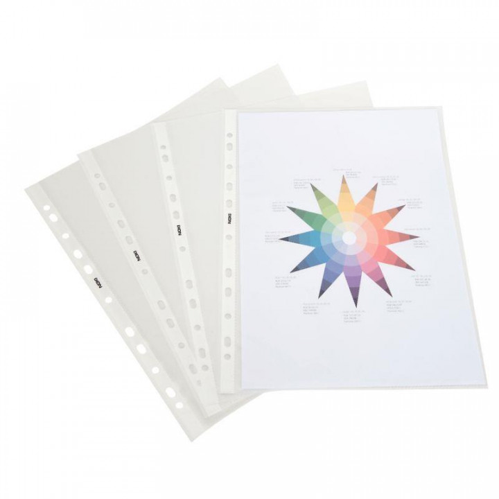 Sachet de 10 pochettes perforées en polypropylène lisse 9/100ème. Pochettes transparentes et résistantes. Anti-transfert d'encre.