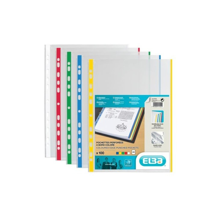 Pochette en polypropylène 9/100 ème rigide avec bord couleur renforcé pour un repérage facile.