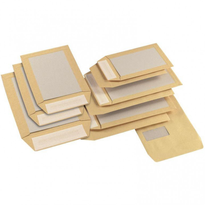 Boite de 100 pochettes dos cartonné 229x324mm bande siliconnée. Idéales pour expédier des documents ne devant pas être pliés.