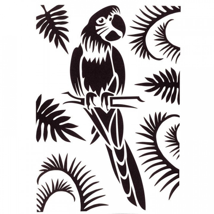 Lot de 6 pochoirs en plastique format A4, animaux sauvages. Lavables et réutilisables. 6 modèles assortis : perroquet, éléphant, girafe, zèbre, tigre et lion.