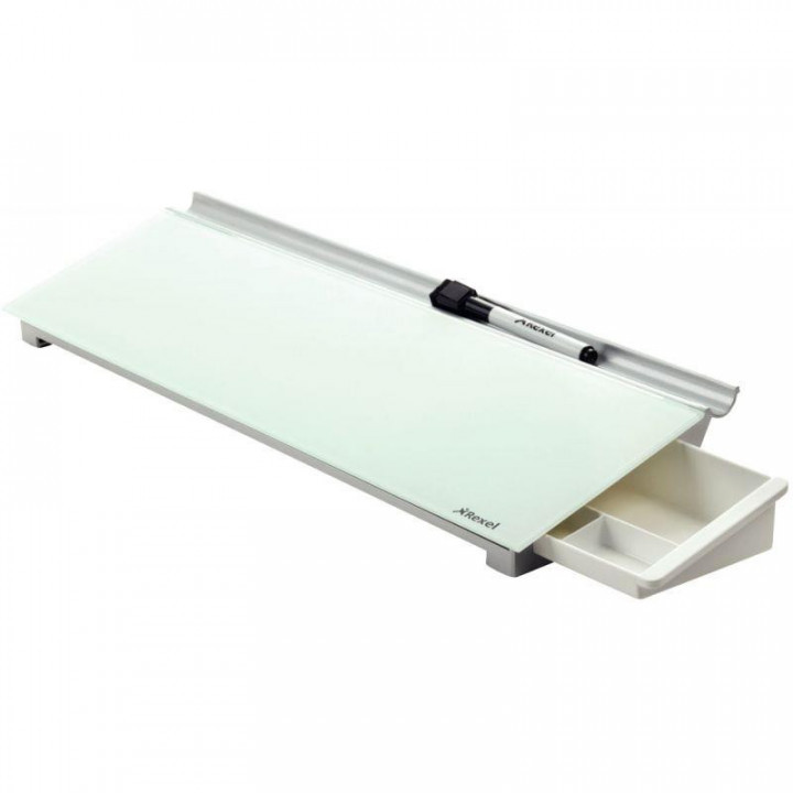 Bloc-notes personnel Diamond. Surface effaçable en verre trempé. Avec trieur intégré coulissant pour marqueurs, trombones, etc... 1 marqueur effaçable fourni. Dim: L45,8 x lg14 x ht6cm. Surface en verre garantie 25 ans.