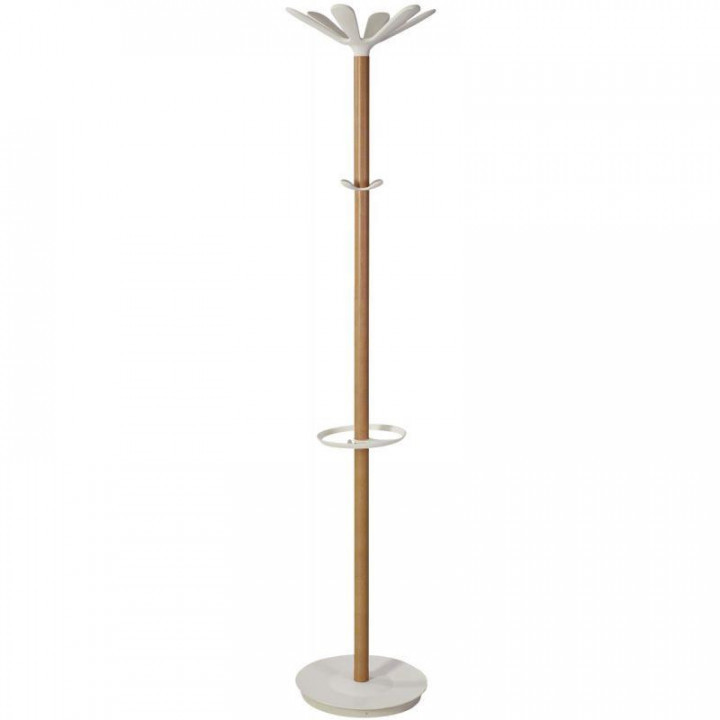 Portemanteau Nahow bois clair et blanc. Portemanteau en bois 6 grandes patères en ABS. Porte-parapluie (capacité 6 parapluies). Design moderne et innovant. Socle lesté. Montage 5 minutes sans outil. Dim : Ø Socle : 35,5 cm. H.175 cm. Poids 6,30 kg. Garantie 2 ans.