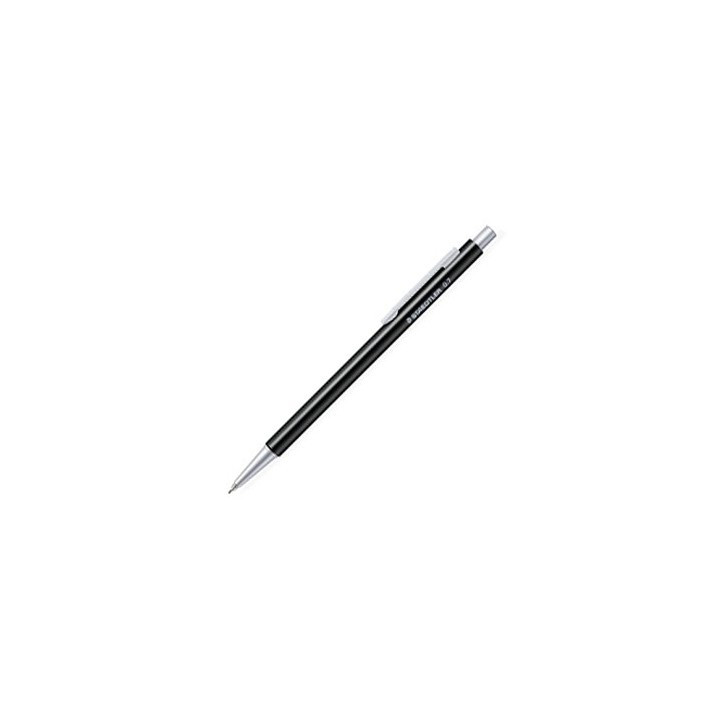 Porte-mine rétractable au corps triangulaire ergonomique pour un meilleur confort d'écriture. Corps, pointe et poussoir avec clip en aluminium. Canon conique rentrant par pression simultanée sur la pointe et le poussoir pour la protection des poches. Embout gomme (sans PVC) intégré sous le poussoir.