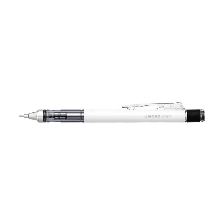 Porte-mines monograph 0,7mm blanc. Tube de guidage extra-long pour un travail précis et moins de mine cassée. Secouer le stylo ou appuyer sur l'agrafe pour faire sortir la mine. Gomme rétractable. Mine : 0,7mm, dureté HB.