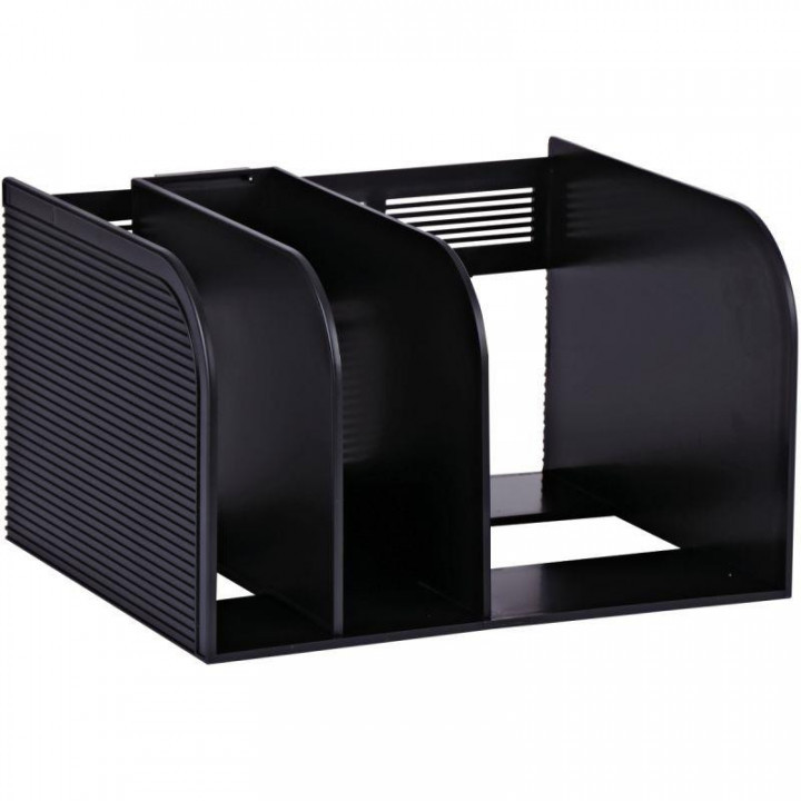 Porte-catalogue OPTIMO 3 compartiments noir. Le porte revue OPTIMO, pratique et esthétique, est idéal pour le rangement et le classement de livres, brochures, catalogues, le support est stable et durable, pour une utilisation régulière. Robuste, il offre un excellent maintien des documents même lourds. Pratique, le serre-livres est composé d'une partie centrale coulissante. Permettant de faire varier l'écartement des compartiments et ainsi de s'ajuster parfaitement aux catalogues, magazines, brochures.