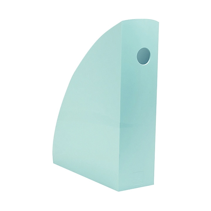Porte revues Mag-Cube Skandi bleu givré. Porte-revues pour documents A4+, stable et grande capacité de classement. Oeillet de préhension. Fabriqué à partir de plastique recyclé. Garantie 25 ans.