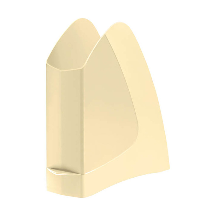 Porte-revues First Jaune pâle. Un porte-revues aux lignes dynamiques pour un rangement très pratique, fonctionnel et élégant de vos documents. Flancs pleins et seuil avant très bas pour faciliter l'introduction de documents. Tirette de préhension en forme de lame qui facilite la saisie du porte-revues. Pour tous documents format A4. Grande capacité grâce à son dos de 7.5cm. Polystyrène résistant.