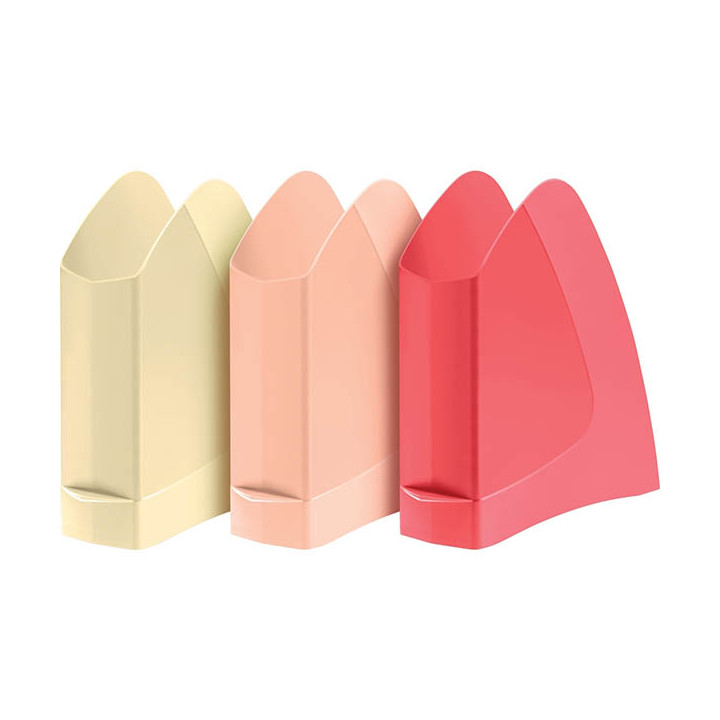 Porte-revues First Rouge coquelicot. Un porte-revues aux lignes dynamiques pour un rangement très pratique, fonctionnel et élégant de vos documents. Flancs pleins et seuil avant très bas pour faciliter l'introduction de documents. Tirette de préhension en forme de lame qui facilite la saisie du porte-revues. Pour tous documents format A4. Grande capacité grâce à son dos de 7.5cm. Polystyrène résistant.