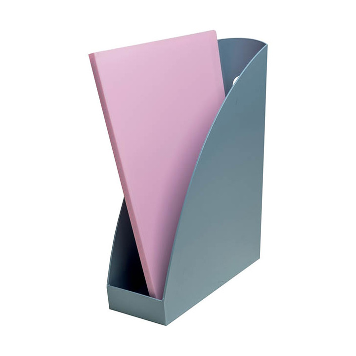 Porte revue MAG-CUBE AUTENTIK bleu. Porte-revues pour documents A4+, stable et grande capacité de classement. Oeillet de préhension. Fabriqué à partir de plastique recyclé. Garantie 25 ans.